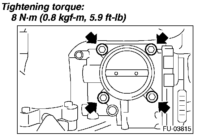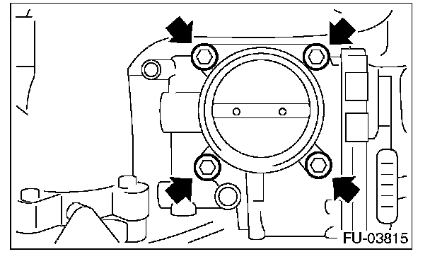 12. Remove the bolts which secure the throttle body to the intake manifold, and remove the throttle body.