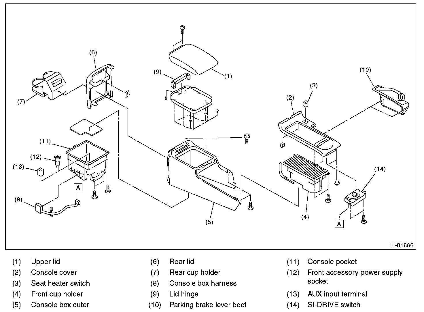2. Remove the parking brake lever cover.