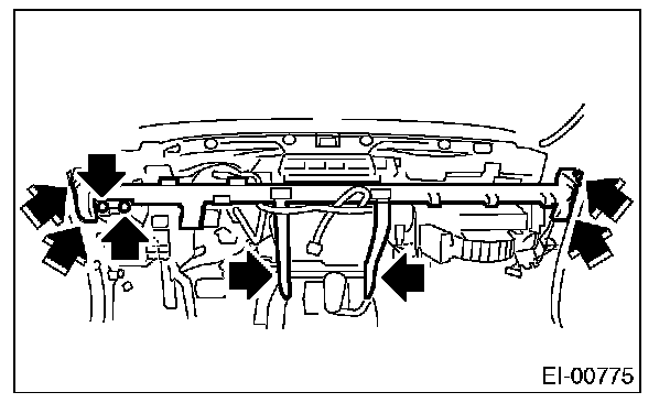 1. Remove the instrument panel. [Ref. to INSTRUMENT PANEL (EXCLUDING STEERING SUPPORT BEAM), REMOVAL, Instrument Panel Assembly.]