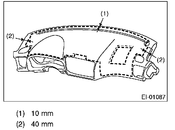Apply at a position spaced by 10 mm from the instrument panel front end, and 40 mm from the ends on both sides.