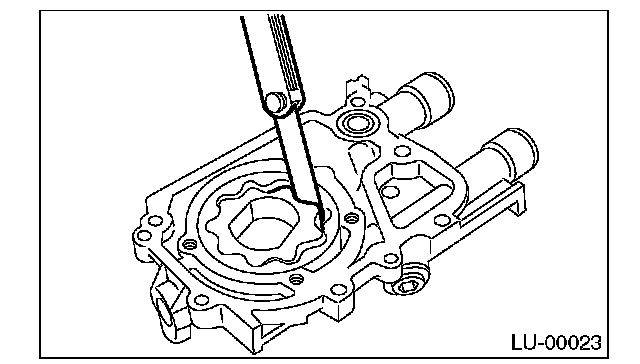Measure the clearance between the outer rotor and the oil pump case. If clearance is out of standard, replace the oil pump case.
