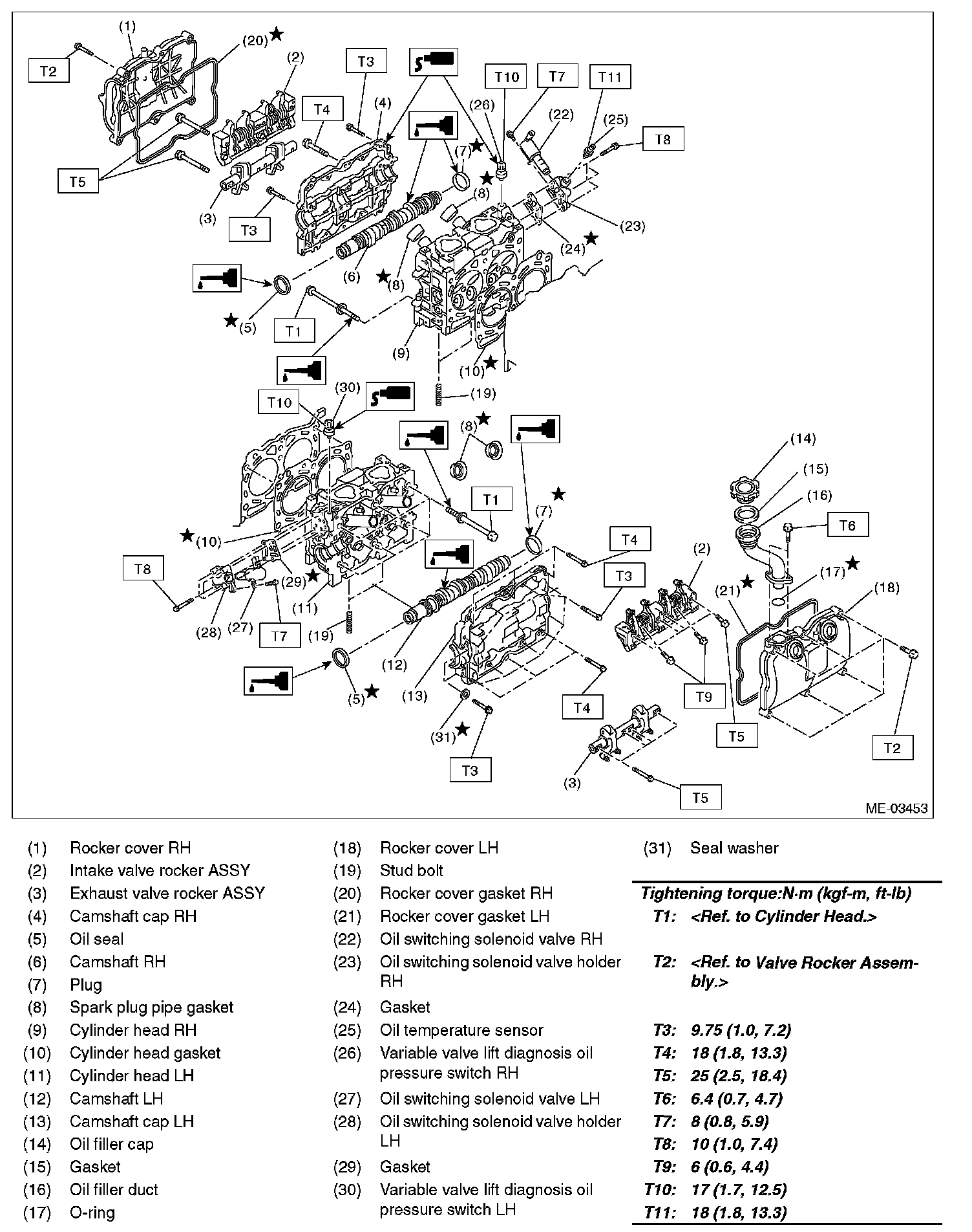 ^ When replacing the single part, perform the work with the engine installed to body. Refer to "Valve Clearance" for preparation procedures.