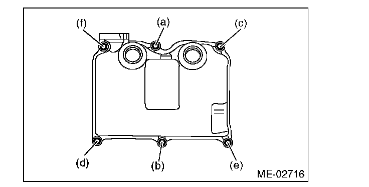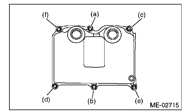 2. Tighten all bolts to 29 N-m (3.0 kgf-m, 21.4 ft-lb) in alphabetical order.