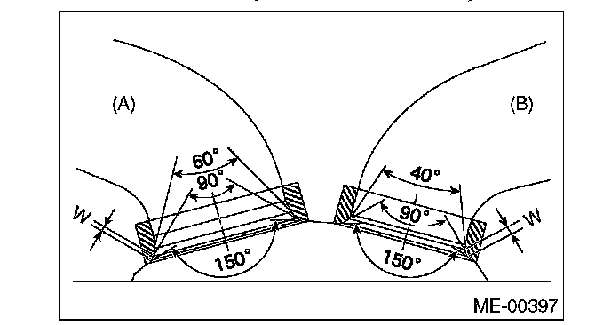 Inspect the intake and exhaust valve seats, and correct the contact surfaces with a valve seat cutter if they are defective or when valve guides are replaced.