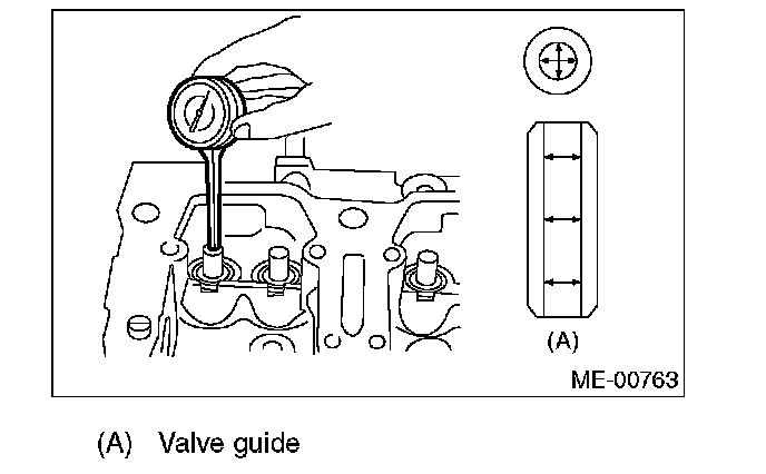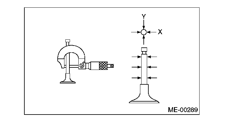 1. Check the clearance between valve guide and valve stem. The clearance can be checked by measuring respectively the outer diameter of valve stem with a micrometer and the inner diameter of valve guide with a caliper gauge.