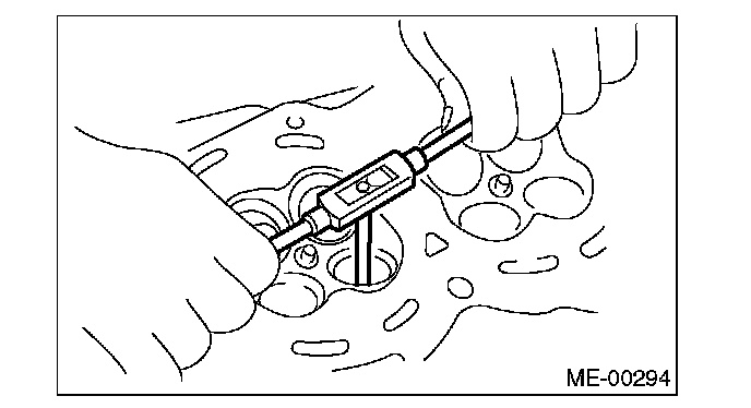 7. Ream the inside of valve guide using ST. Put the ST in valve guide, and rotate the ST slowly clockwise while pushing it lightly. Bring the ST back while rotating it clockwise.