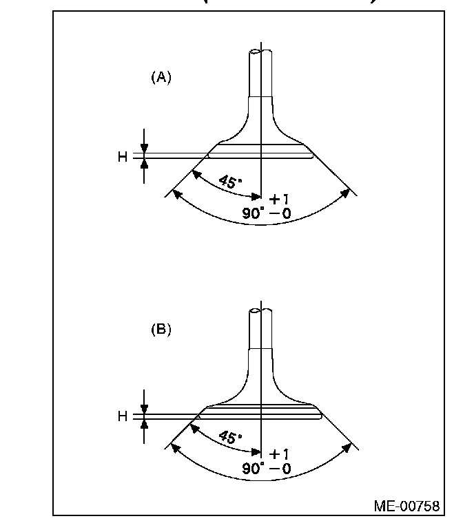 1. Inspect the flange and stem of valve, and replace the valve with a new part if damaged, worn, deformed, or if "H" exceeds the specified limit.