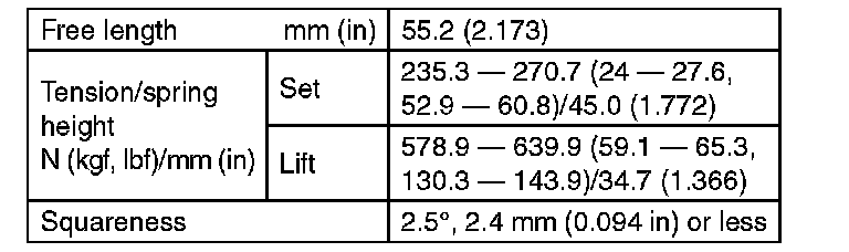 1. Check the valve springs for damage, free length, and tension. Replace the valve spring if it is not within the standard value presented in the table.
