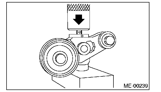 2. Check the belt tension pulley for smooth rotation. Replace the automatic belt tension adjuster assembly with a new part if abnormal noise or excessive play occurs.