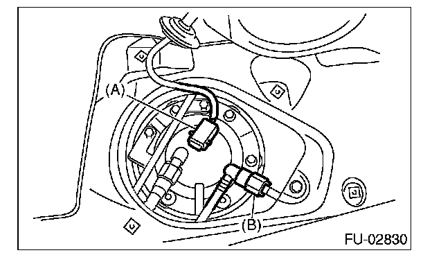 9. Disconnect connector (A) from fuel sub level sensor.