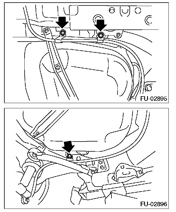 16. Tighten the bolts which secure the rear brake hose mounting bracket.