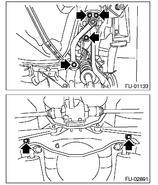 3. Remove the bolts which secure the rear suspension assembly to the body.