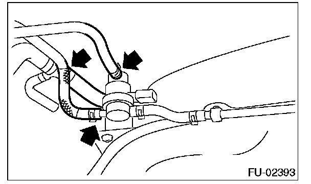 2. Securely insert the fuel filler hose (A) and evaporation hose (B) into the specified position, then attach the clamp or clip as shown in the figure.