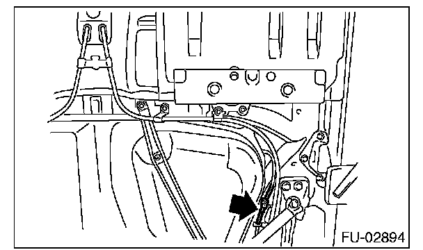 7. Tighten the bolts holding the parking brake cable clamp.