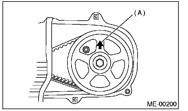 NOTE: When the arrow mark (A) on cam sprocket LH is at the top position, the #1 cylinder piston is at top dead center of the compression stroke.