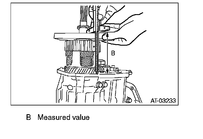 3. Using the ST, measure the height "B" from the AT main case mating surface to ball bearing outer ring contact surface.