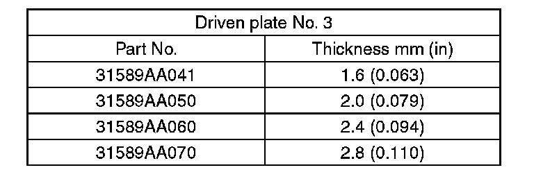 a: Thickness of tool used when measuring "B" 0.28 (0.011): Gasket thickness (Unit mm (in).If it is out of specification, select the driven plate No. 3 to adjust within the specification.