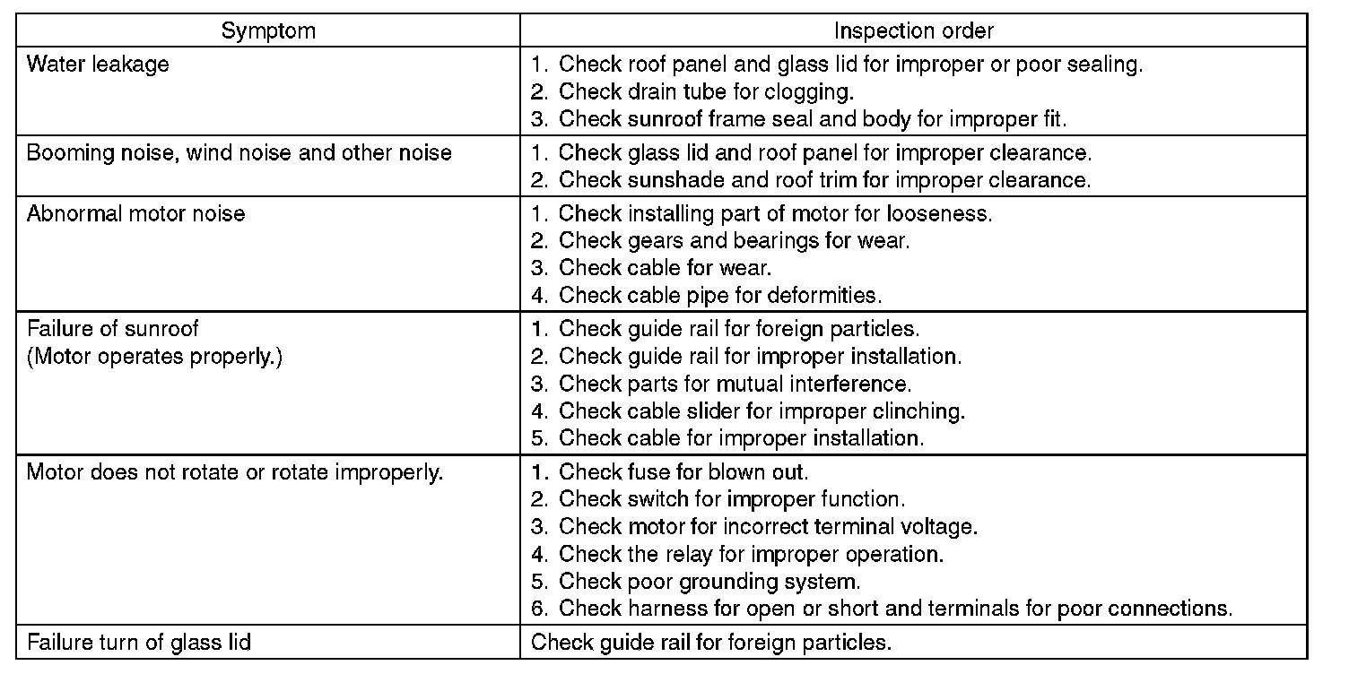SUNROOF CONTROL SYSTEMINSPECTION