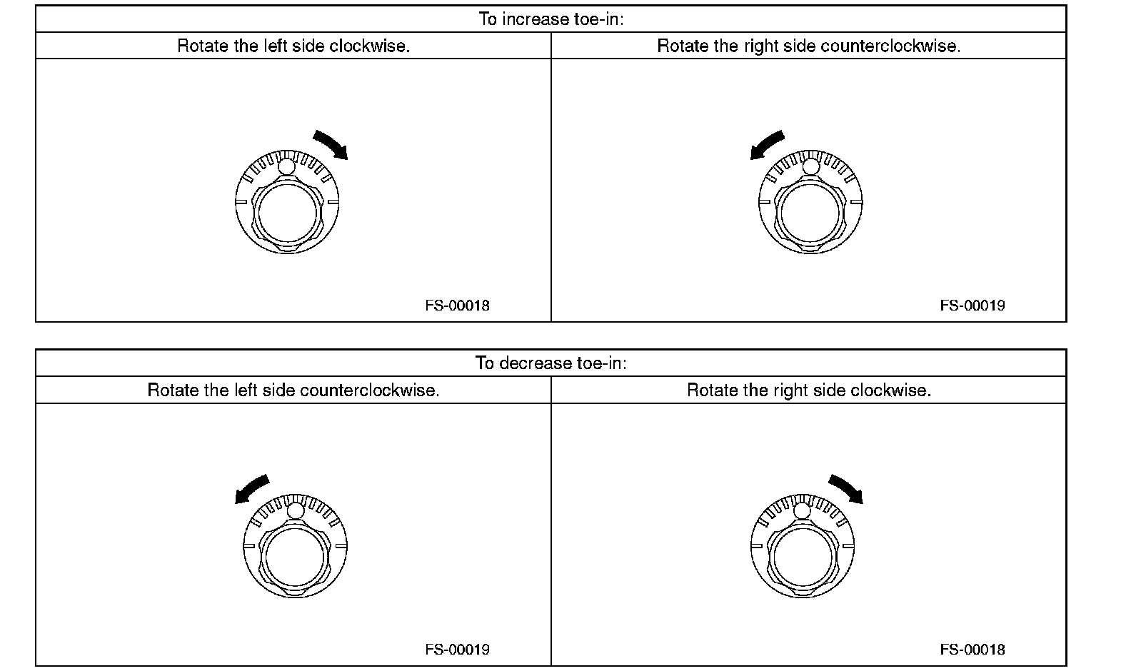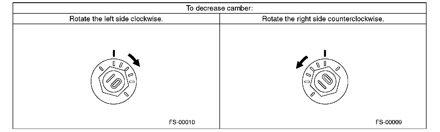2. When one rear wheel is adjusted in a toe-in direction, adjust the other rear wheel equally in toe out direction, in order to make the thrust angle adjustment.