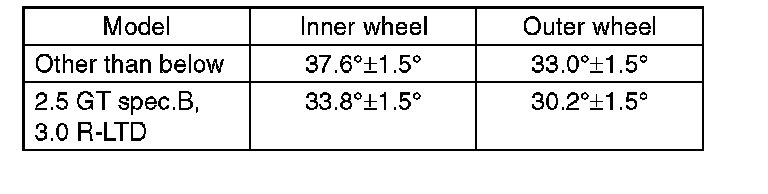 1. Check that the left and right wheel steering angles are within specification.