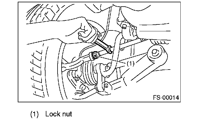 2. Loosen the left and right side steering tie-rod lock nuts.