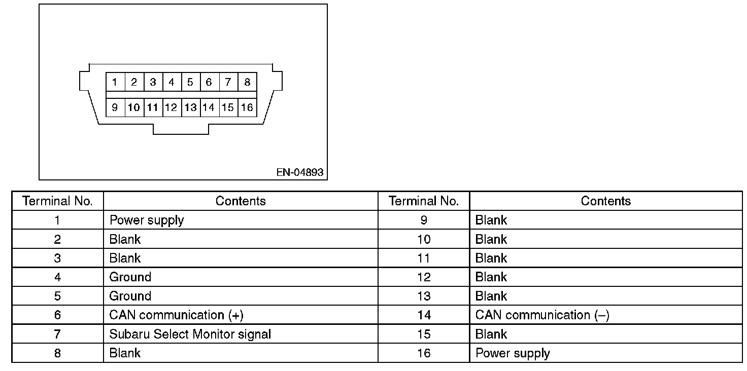NOTE: This connector is used for Subaru Select Monitor.