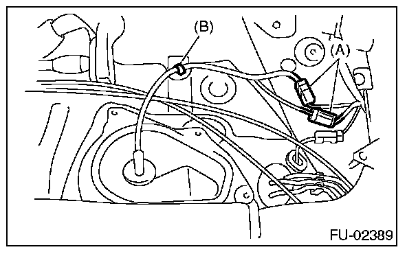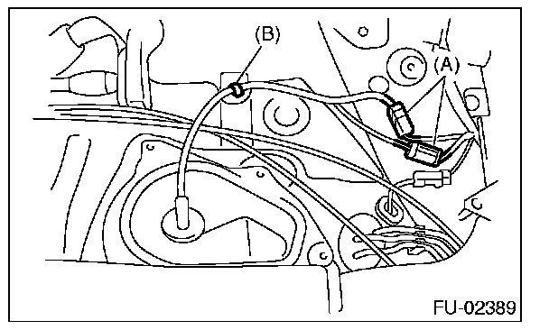 25. Connect connector (A), and install clip (B).