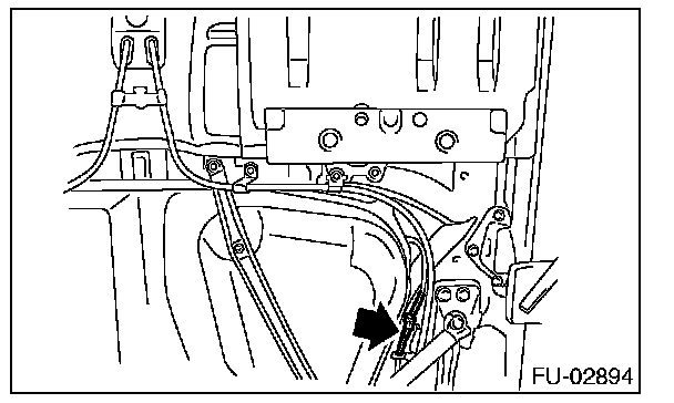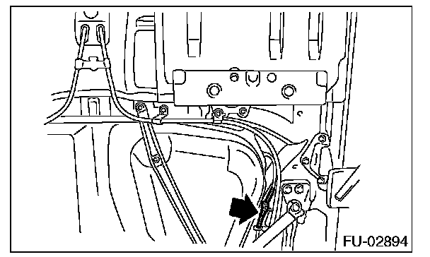 7. Tighten the bolts holding the parking brake cable clamp.