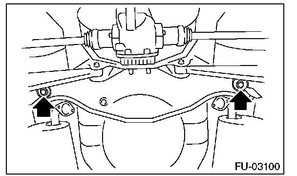 1. Support the rear differential with the transmission jack.