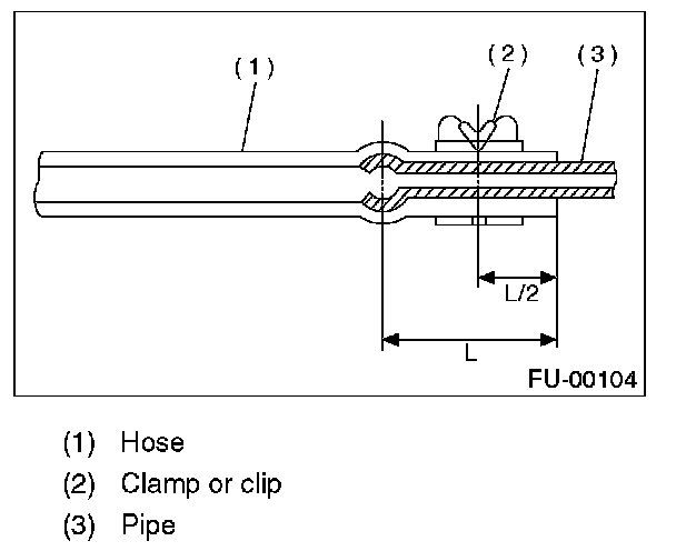 2. Securely insert the fuel filler hose (A) and evaporation hose (B) to the specified position, then tighten the clamp or clip as shown in the figure.