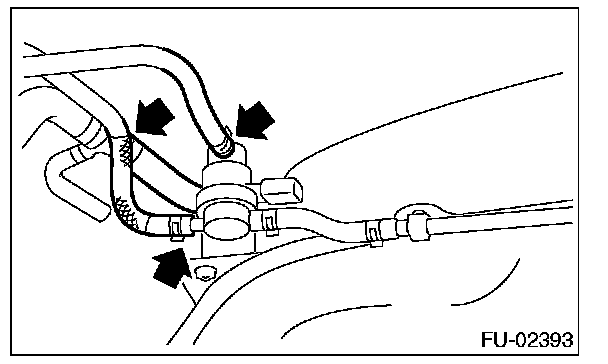 - Fuel may remain in the fuel tank. This will cause the left and right sides to be unbalanced. Be careful not to drop the fuel tank when removing.
