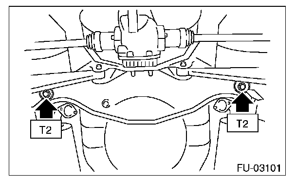2. Support the rear suspension assembly, and tighten the bolts which secure the rear suspension assembly to the body.