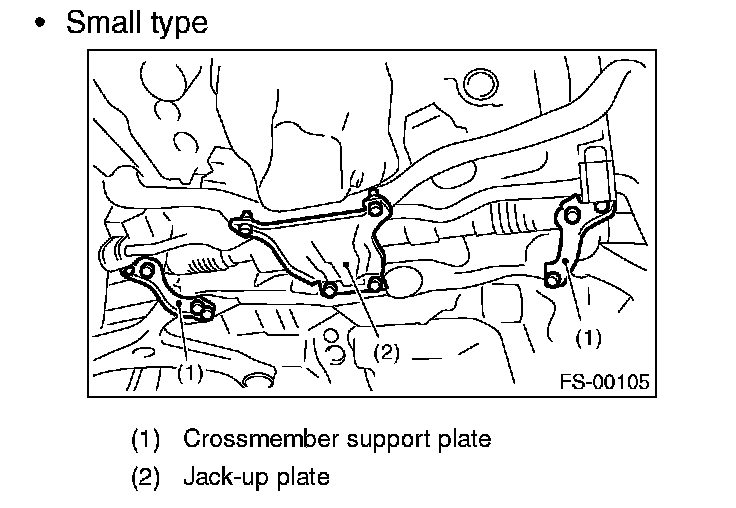 2. Lift up the vehicle, and then remove the front crossmember support plate and jack-up plate.