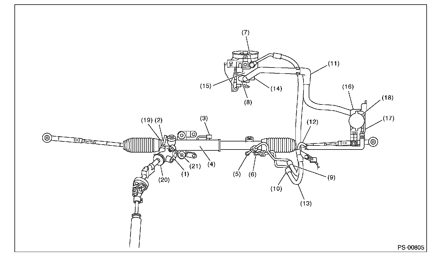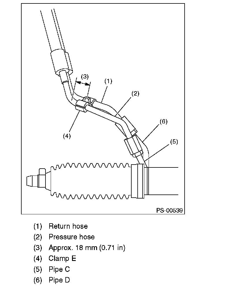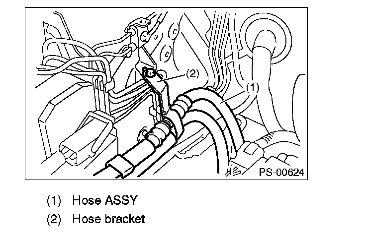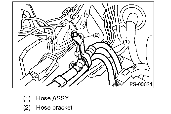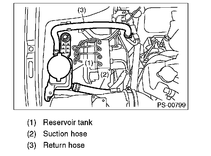 CAUTION: Although the surface layer materials of rubber hoses have excellent weathering resistance, heat resistance and resistance for low temperature brittleness, they are likely to be damaged chemically by brake fluid, battery electrolyte, engine oil and automatic transmission fluid and their service lives are to be very shortened. Wipe off hoses immediately if any of these come into contact with the hoses. Since resistances for heat or low temperature brittleness are gradually declining according to time accumulation of hot or cold conditions for the hoses and their service lives are shortening accordingly, it is necessary to perform careful inspection frequently when the vehicle is used in hot weather areas, cold weather areas and a driving condition in which many steering operations are required in short time.