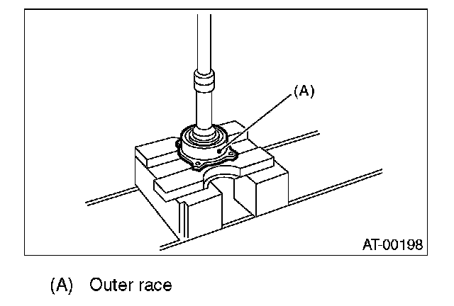 3. Separate the roller bearing and outer race from shaft using a press.