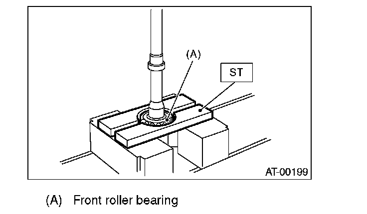 4. Separate the front roller bearing from the shaft using a press and the ST.