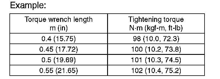 Tightening torque: 70 N-m (7.1 kgf-m, 51.6 ft-lb)