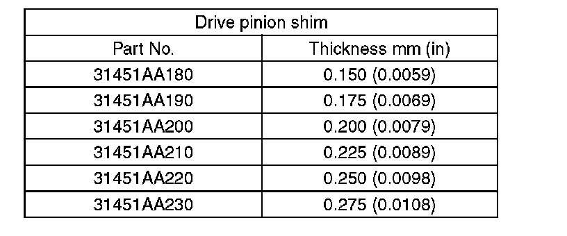 8. Calculate the thickness "t" mm (in) of the drive pinion shim.