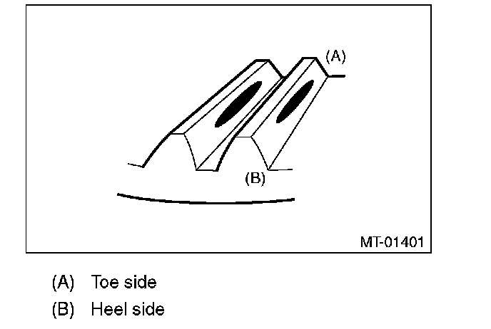Check item: Tooth contact surface is slightly shifted toward the toe side under a no-load condition. (When driving, it moves towards the heel side.)