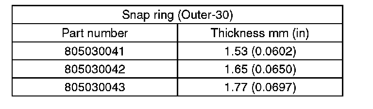 Snap ring (Outer-30) to ball bearing clearance: 0.01 - 0.15 mm (0.0004 - 0.0059 in)