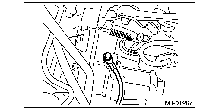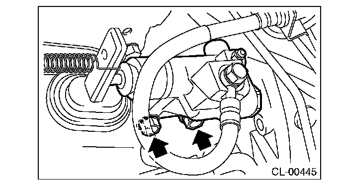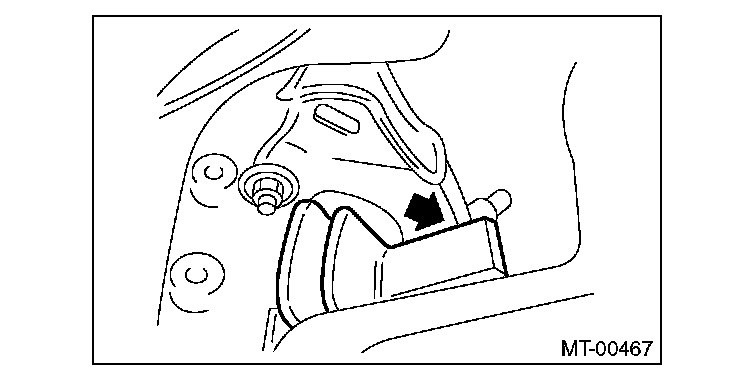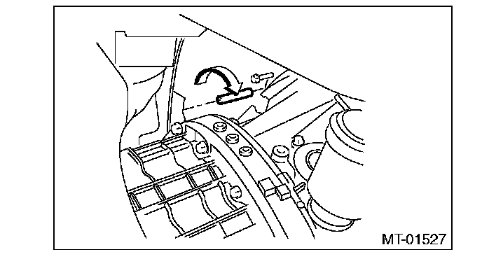 - Push the release fork towards the operating cylinder side until a clicking sound is heard. Pull the release fork towards the engine side. If the release fork is not in contact with the case, the setting is complete.
