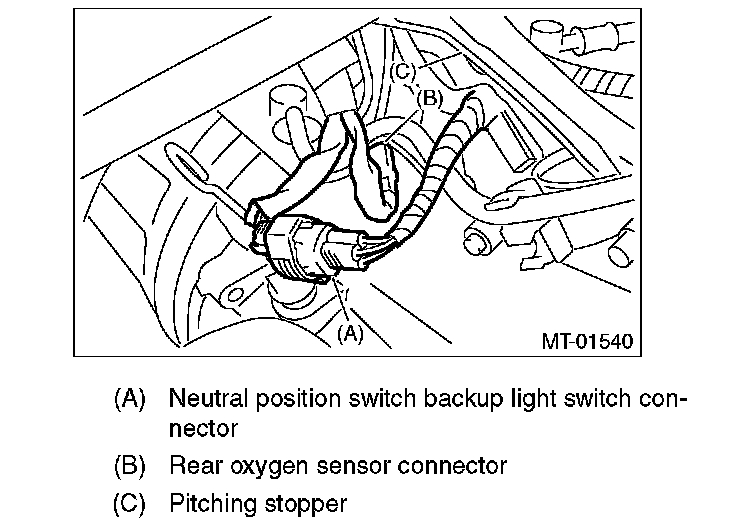 15. Connect the following harness connectors, then attach the engine hanger rear.