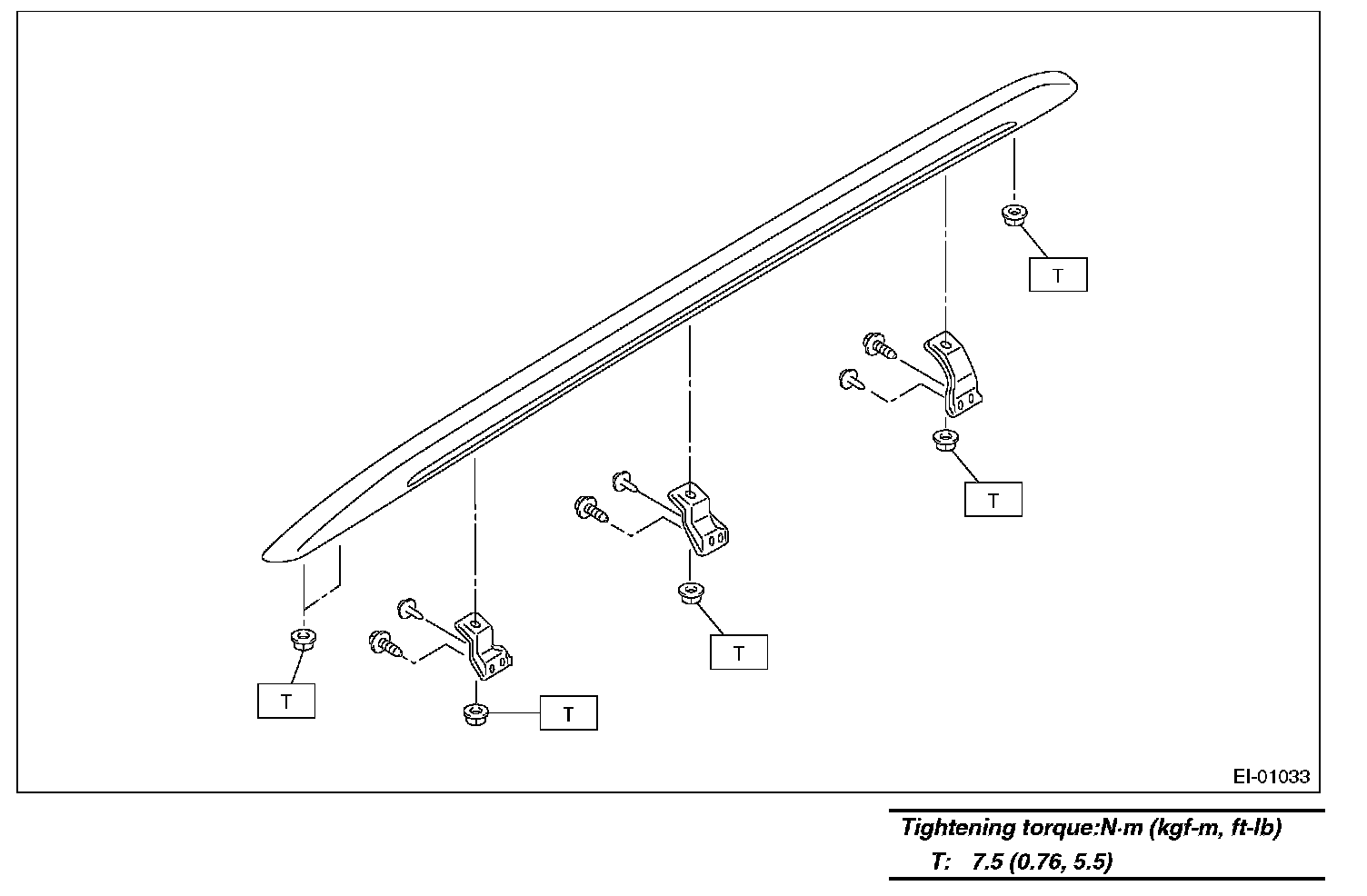 Tightening torque: 7.5 N.m (0.76 kgf-m, 5.5 ft-lb)