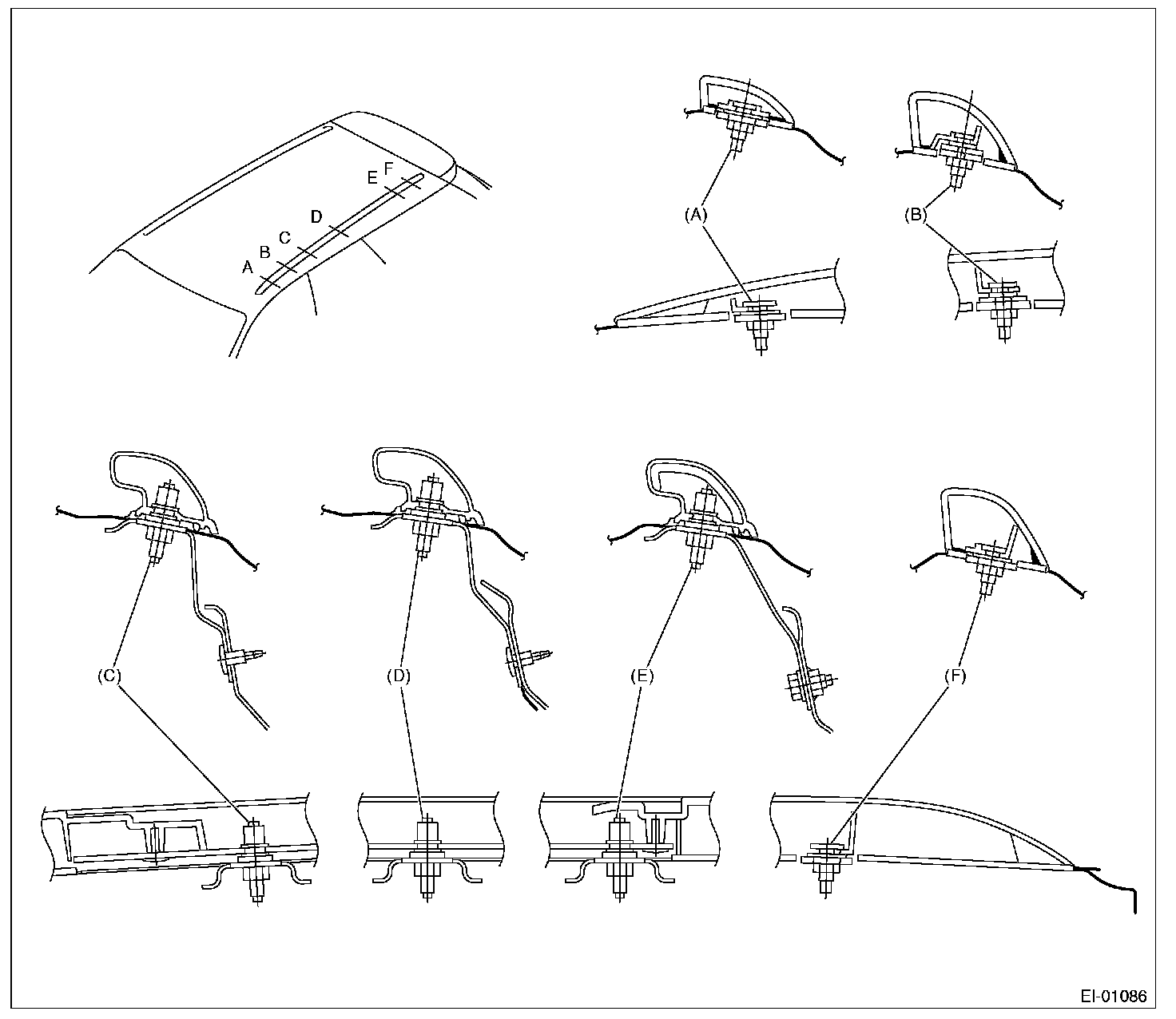 CAUTION: When removing or installing the roof rail, be careful not to scratch the body panel with the stud bolt of roof rail.