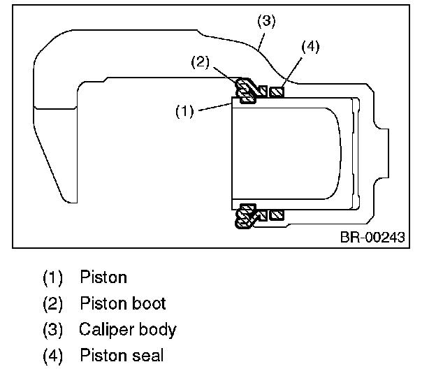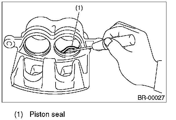 2. Apply a coat of brake fluid to piston seal and install the piston seal to the caliper body groove.