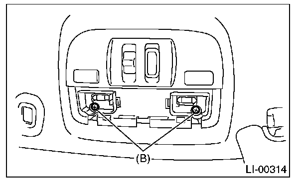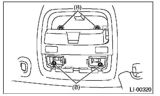 2. Remove the lens (A) and spot map light mounting screws (B).