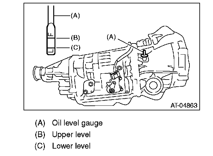 4. Remove the oil level gauge again, and check the level of differential gear oil. If the differential gear oil level is below "L" line, add oil to bring the level up to "F" line.