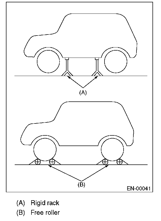 2. Lift up the vehicle using a garage jack and place it on rigid racks, or drive the vehicle onto free rollers.