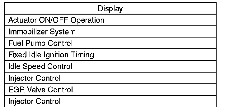 1. On the [[System Operation Check Mode]] display screen, select the {Idle Speed Control}.