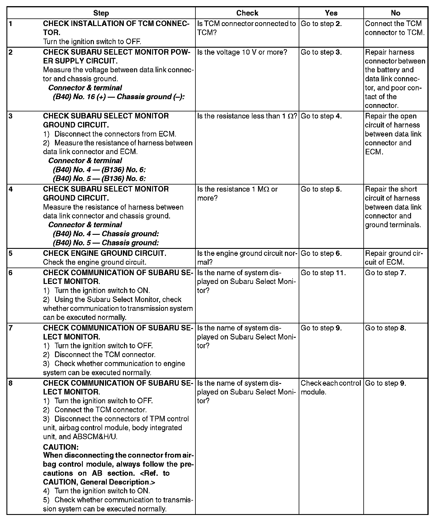 Diagnostic Procedure for Subaru Select Monitor CommunicationCOMMUNICATION FOR INITIALIZING IMPOSSIBLE